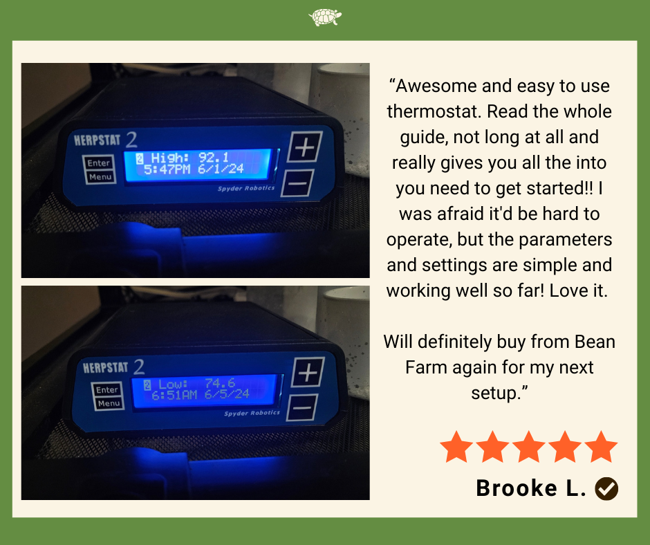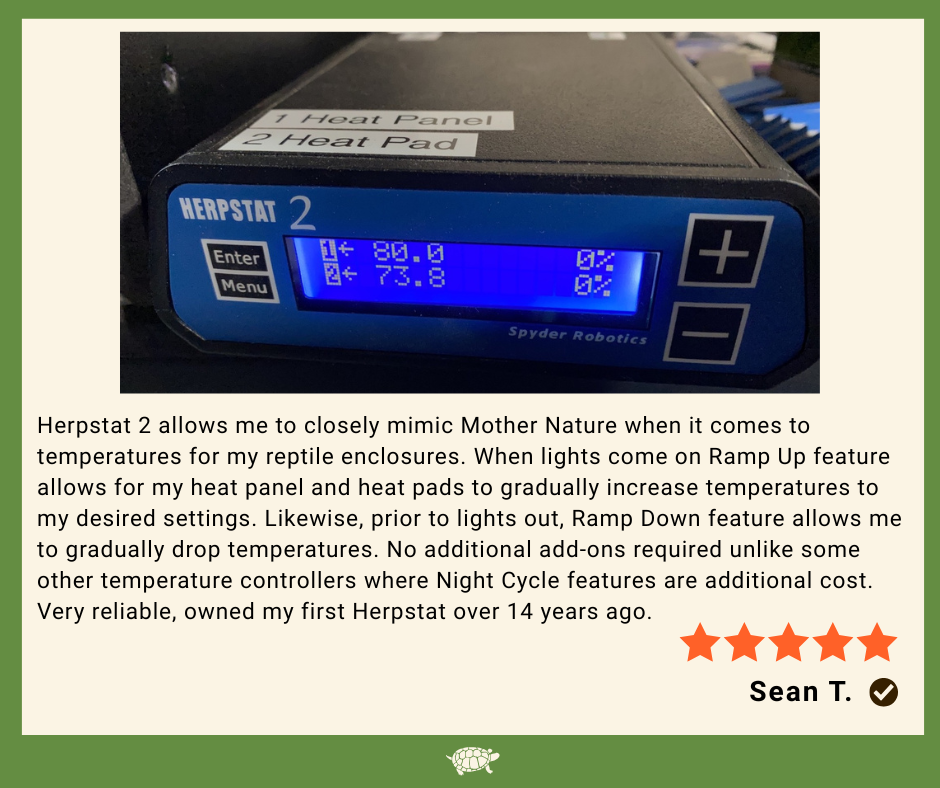 Herpstats are best-in-class reptile thermostat devices preferred by professional reptile keepers, breeder, and hobbyists for temperature precision. All Herpstat units are proportional thermostats with selectable pulse or dimming modes allowing for advanced temperature ramping to gradually increase/decrease heat over a set period of time. Can also be used in non-proportional (on / off) mode.